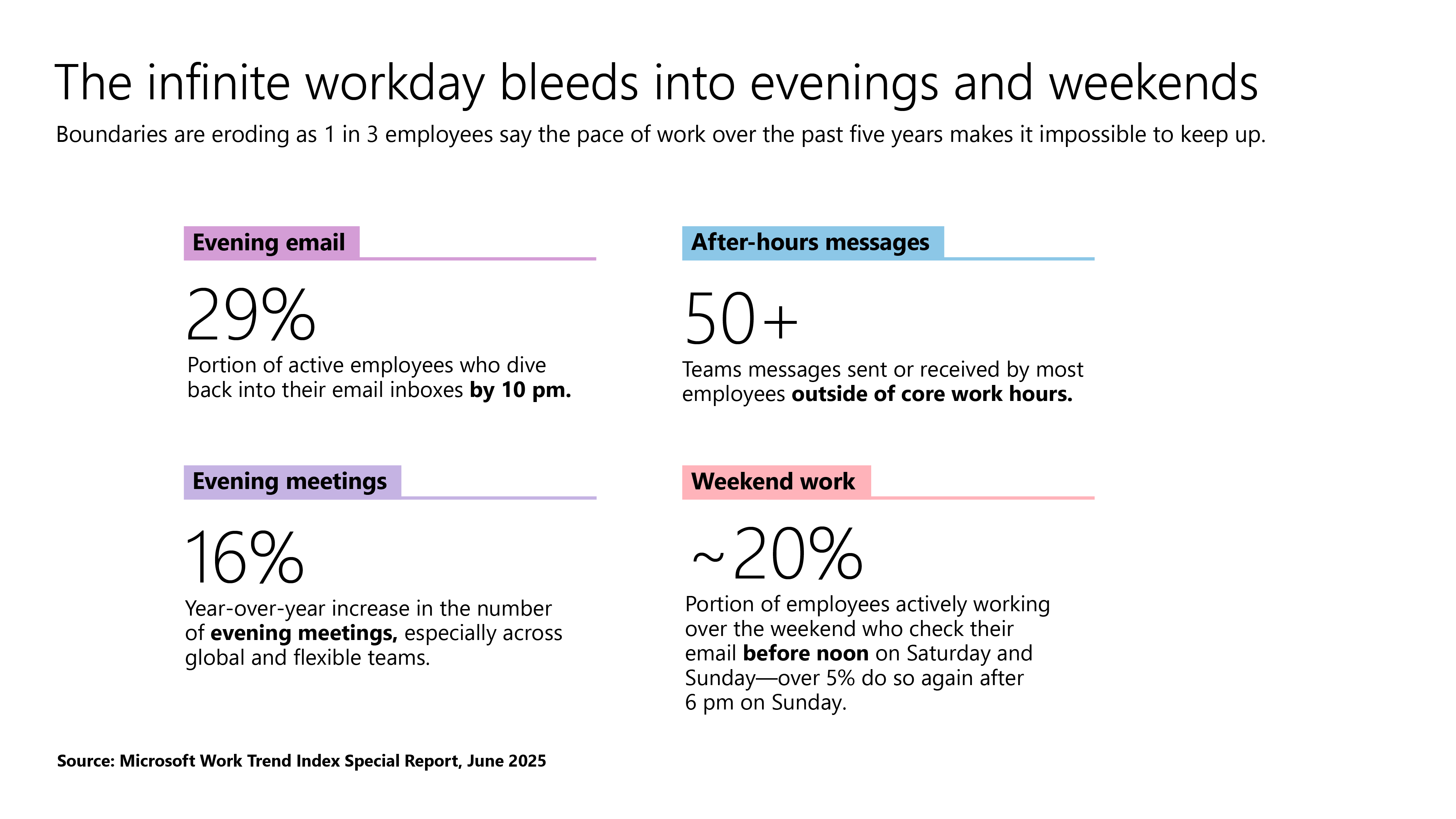 Aby w pełni wykorzystać potencjał AI, trzeba jednak zmierzyć się z przeszkodą, która wciąż spowalnia większość organizacji: niekończącym się dniem pracy. A jest z czym się zmagać. Dane, które pojawiły się w raporcie mocno mnie poruszyły.